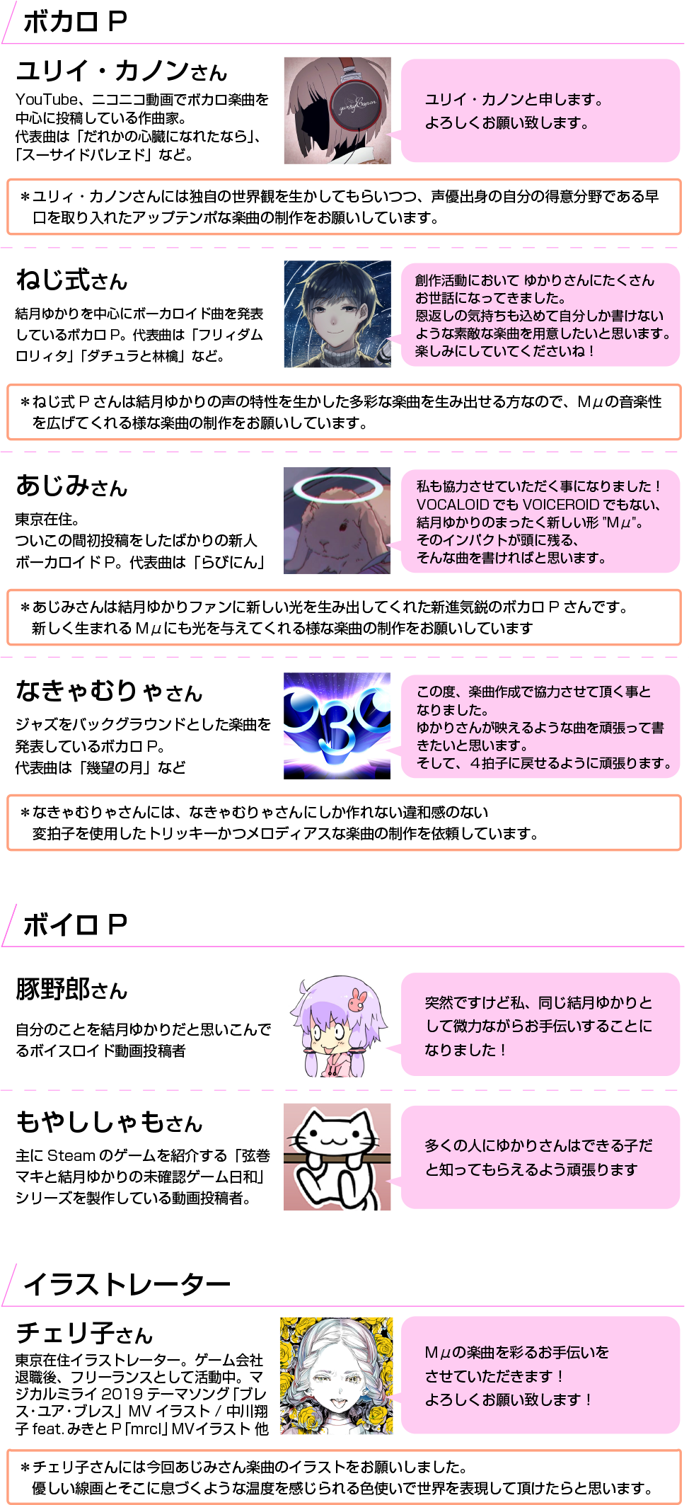 まだまだ始まったばかりの結月ゆかりΜμ企画ですが、引き続き応援のほどよろしくお願いいたします。