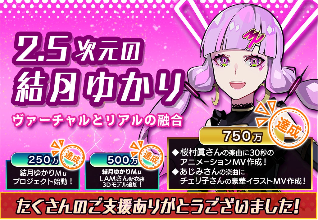 いよいよ『結月ゆかりMμ VRライブ』の完成が目前となりました。長い年月お待たせしてしまいましたこと、心よりお詫び申し上げます。その分、皆様にお楽しみいただける最高品質のVRライブをお届けできる仕上がりとなっております。
