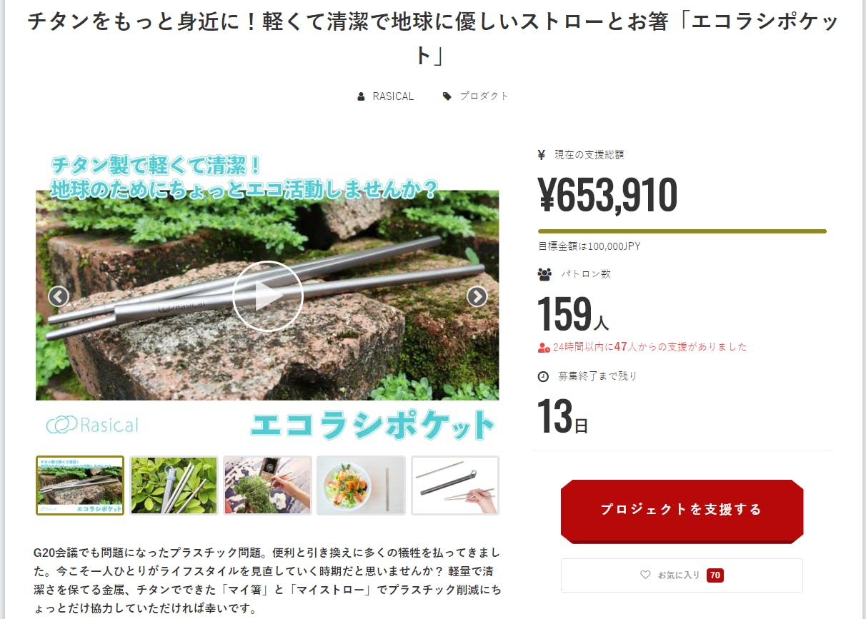ご検討中の方、是非、ご支援のご検討、宜しくお願い致します。