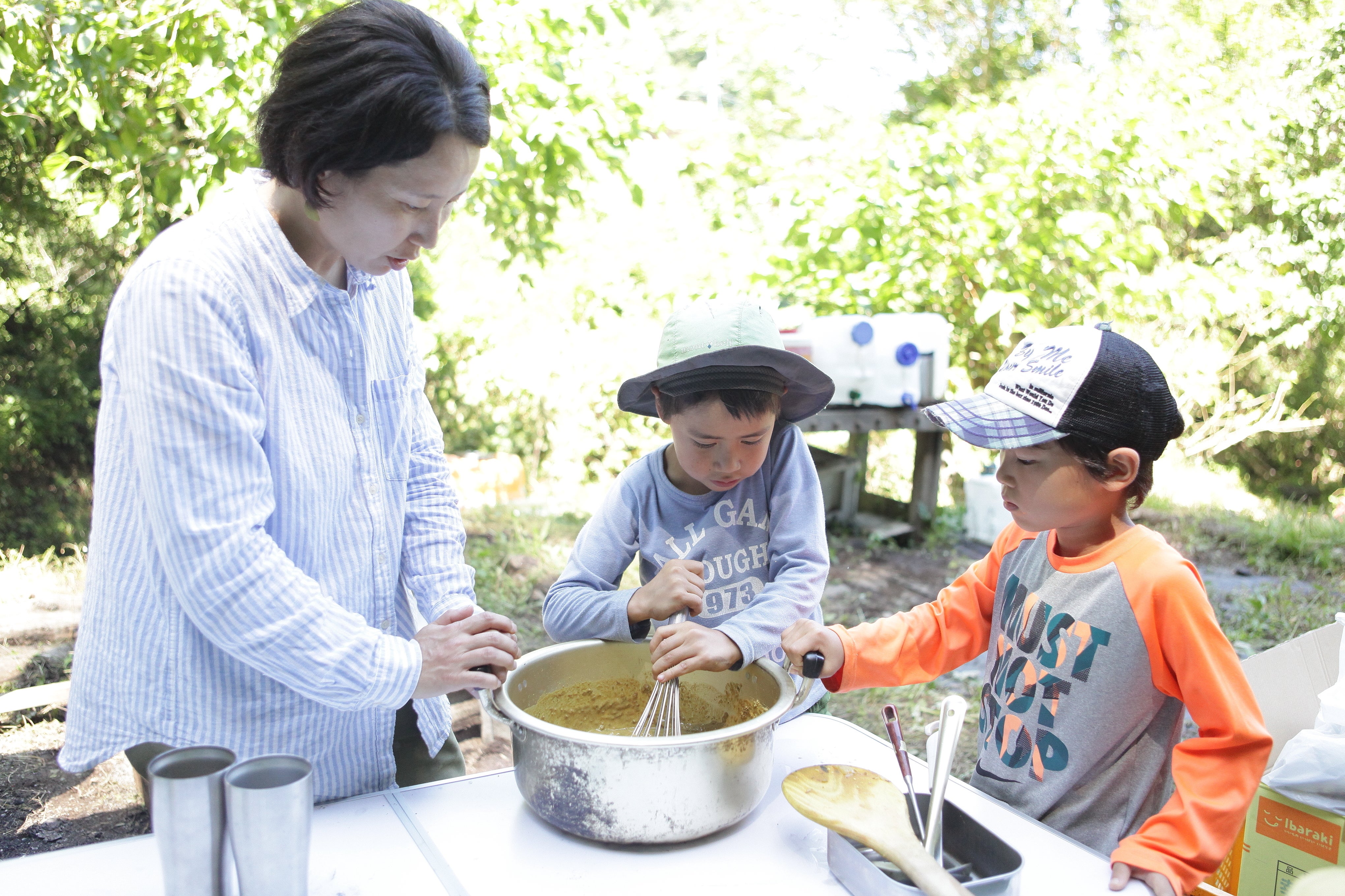 自分らしい過ごし方ができる ちいろばの森で、豊田さんお手製の美味しいスパイスカレーを食べながら 、いろんなことを語りあう。その周りには好奇心のアンテナをバリバリに立てながら遊びこむ子ども達!!