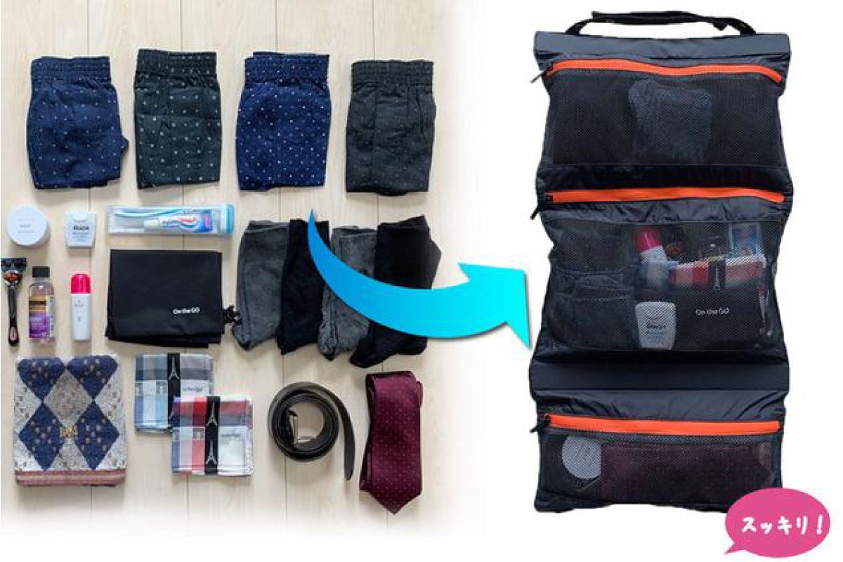 On the GOバッグ2.0はコンパクトで持ち運び便利。スーツケース内にコンパクトに収まり、下着や小物等を整理して収納できます。