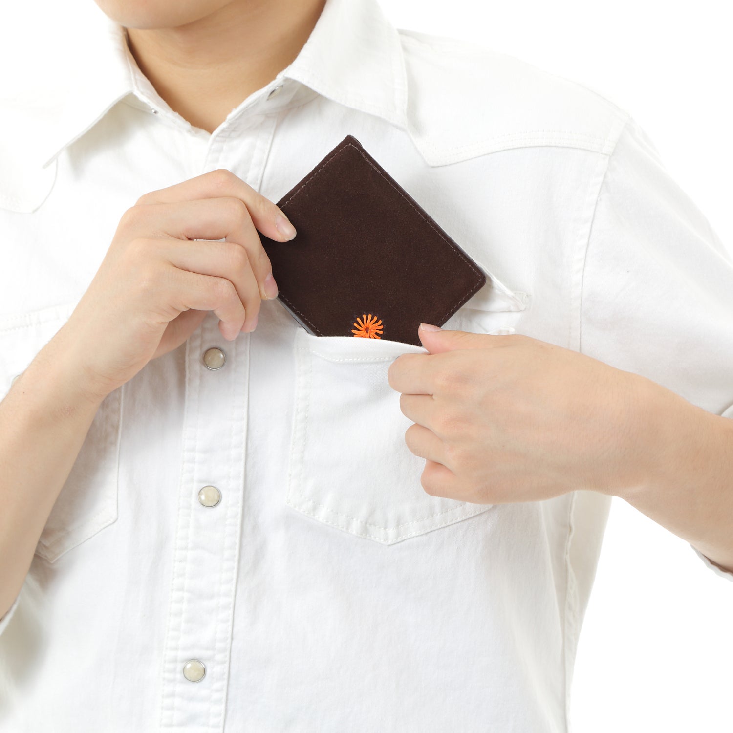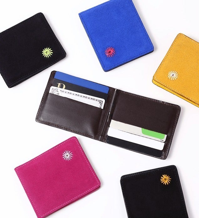 マネークリップには珍しい「スウェード素材!」