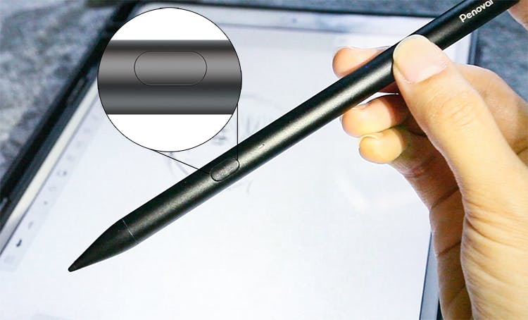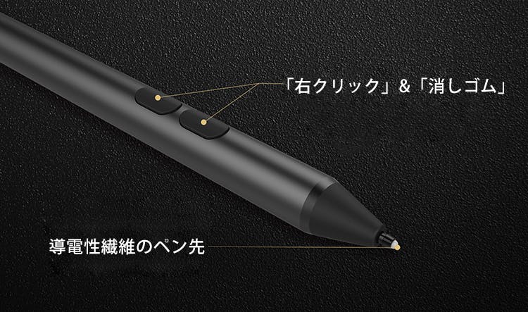 タッチペンには上下のボタンが付いており、「右クリック」と「消しゴム」の機能が搭載。押すだけでインクが消しゴムに変わり、ペン先を動かさずに書かれたものを消すことができます。