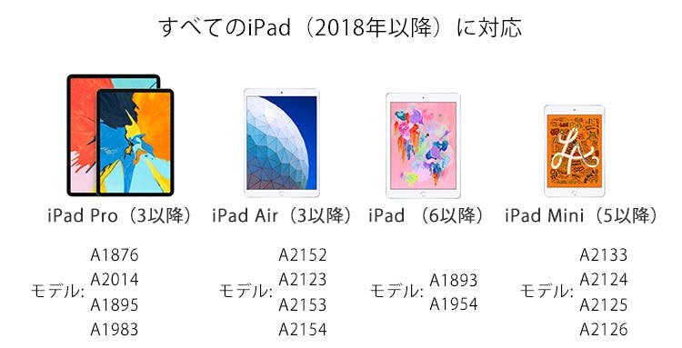 ※お手元のiPadが対応しているか、本体背面に刻印されているモデルをご確認ください。