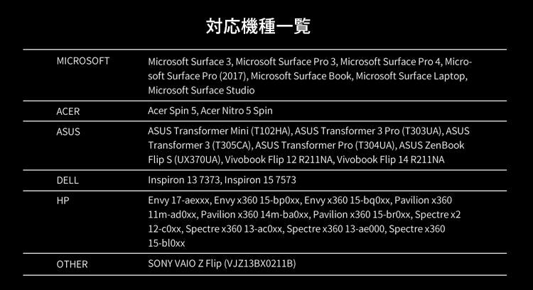 Surfaceシリーズだけでなく、VAIOやSpectreシリーズでも使え、汎用性があります。