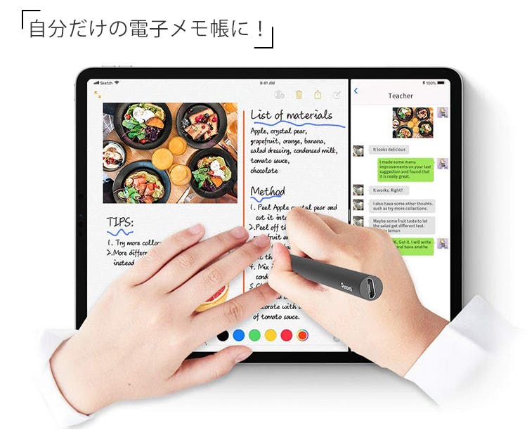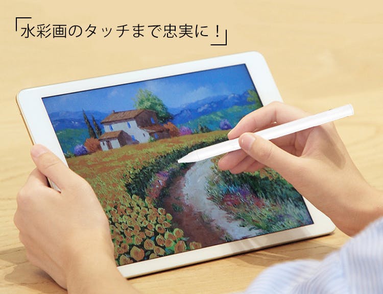 「Penoval Pencil」は、これまでのタッチペンとは違い、パームリジェクション機能が搭載することにより、まるで紙に鉛筆で書いてるかのようにスラスラ書けます。 iPadの画面にデッサンから水彩画まで、自分のアイデアを書き込むことができます。