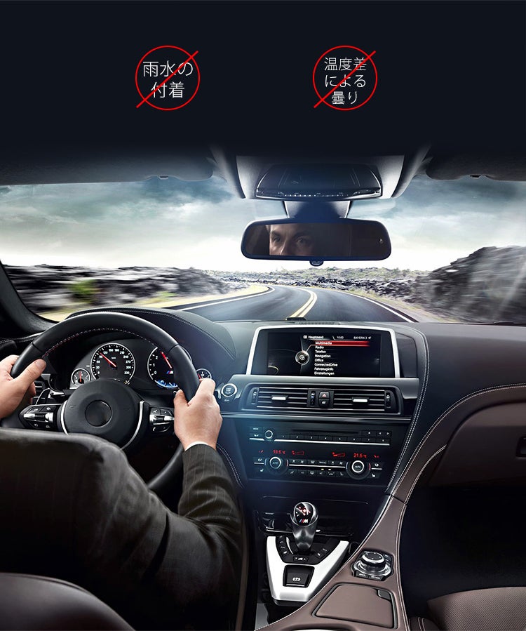 >曇り防止で暖房やエアコンなど外との温度差がある際も曇り防止で常にクリアな視界をキープ