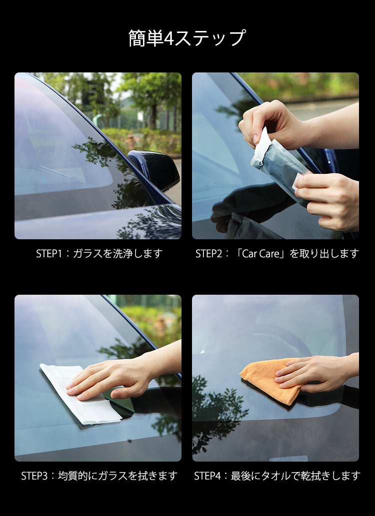 「Car Care」には車外用、車内用2種類のタオルがあります。外と中、ダブル対策で雨水や曇りに付着するホコリや汚れなどの対策も実現、清潔さも維持します。