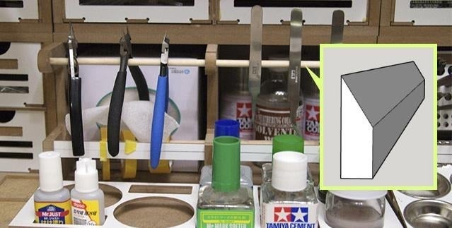 プラモデル・模型製作には非常に多くの道具が必要です。ニッパー、ヤスリ、カッター、ピンセット、パレット、塗料のボトル、さらにはランナーや説明書などでデスク上を占領してしまうと、実際に作業できるスペースは狭くなってしまいます。作業スペースを確保できなければ、集中力は途切れやすくなり、せっかくの楽しい時間が台無しです。