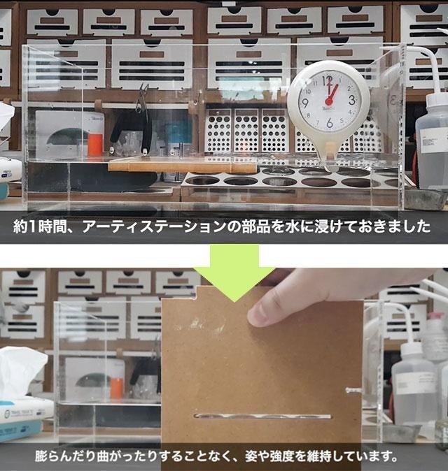 A.アーティステーションは高密度のMDF木材を採用しています。一般MDFに比べてはるかに耐久性に優れています。アーティステーションに使用されるMDFは、透明あるいは白で両面UVコーティングされているため、軽い汚れは水などで簡単に除去できます。