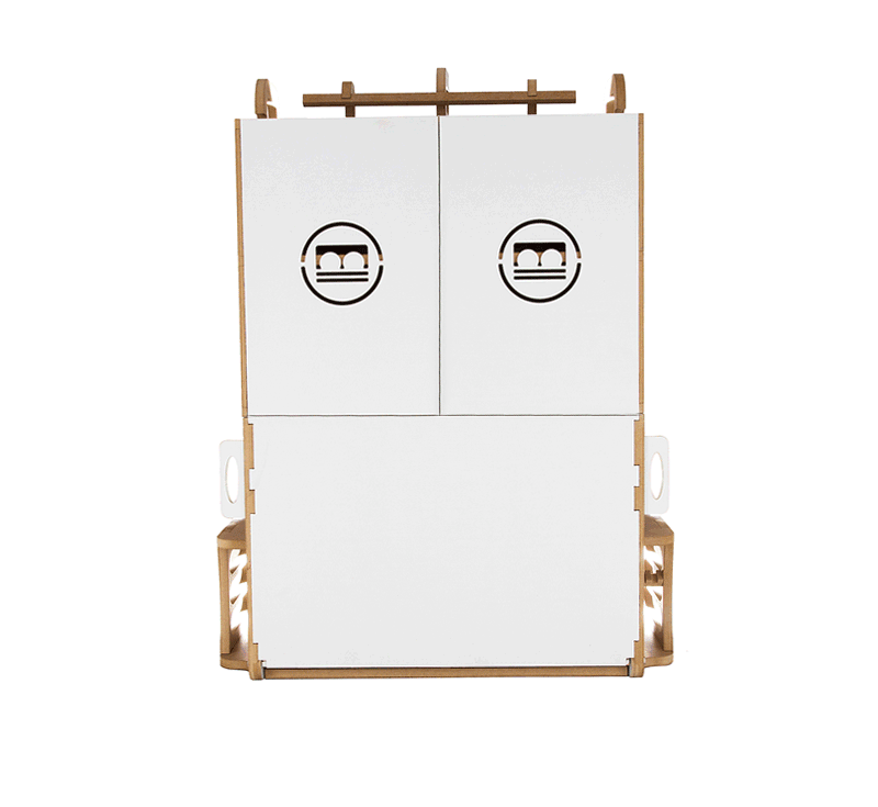 アーティステーションは、ユーザーそれぞれの様々な環境に合わせて、自由で組み立てるモジュール式です。高密度のMDF素材の両面にUVコーティングを施しており、一般のMDFと比べて汚れや湿度に強いのが特徴です。