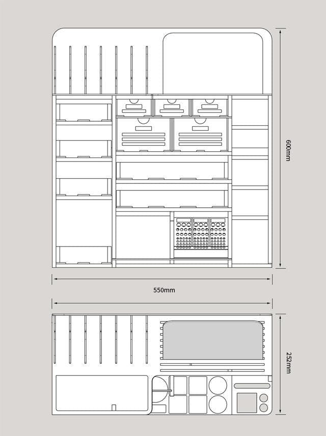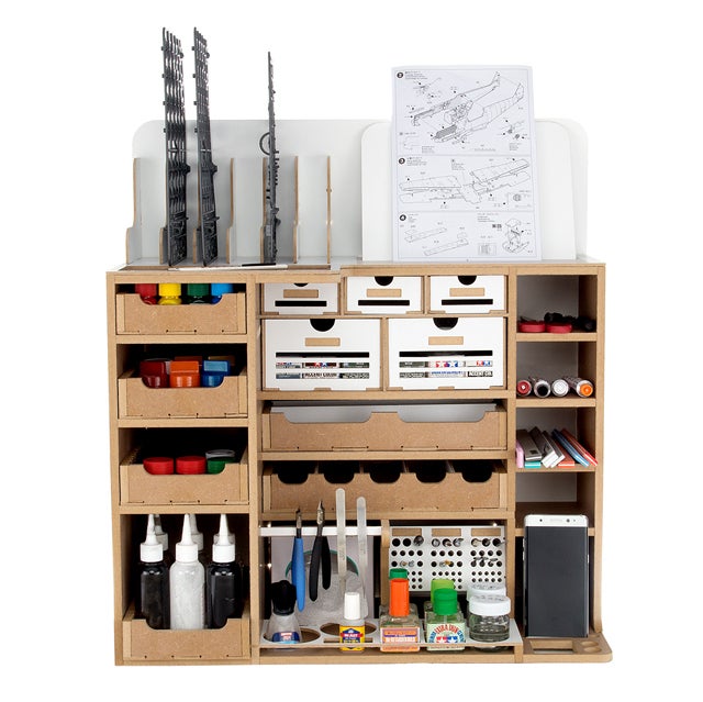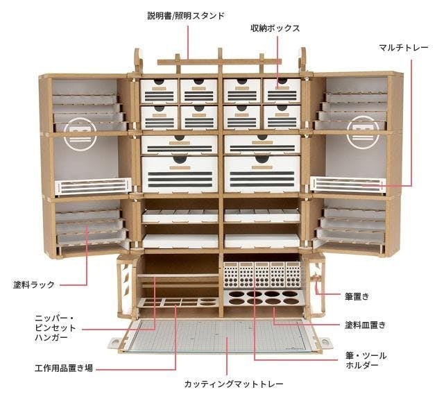 自由度が高く効率的なモジュール式収納システムは、プラモデル製作に集中できる環境を作り出し、すべてのモデラ―に快適な作業空間を提供します。