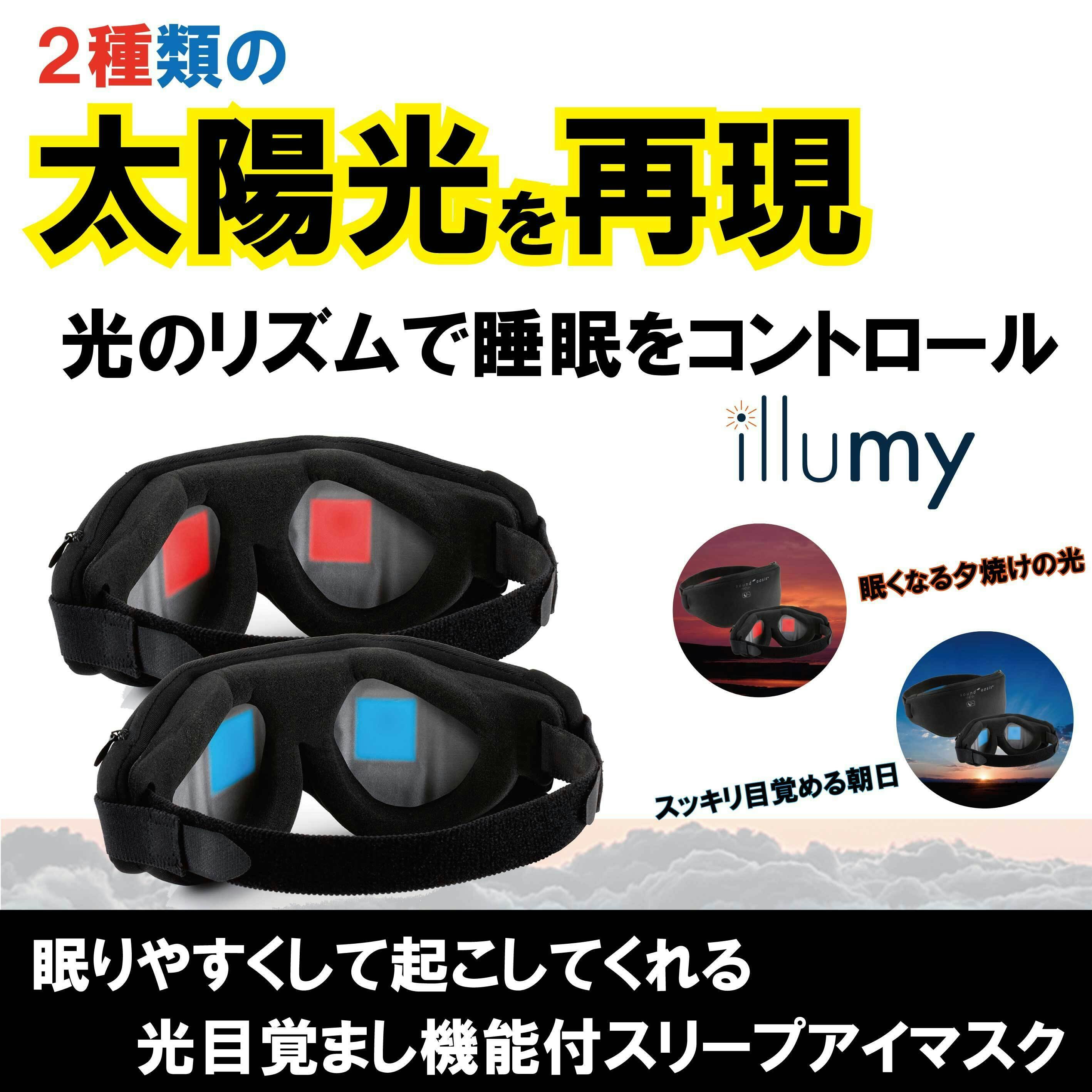 この度、2種類の太陽光を再現した「眠る」&「起きる」という生活にかかせない二大要素をサポートした「起こしてくれるアイマスク illlumy イルミー」をみなさまにお届けできることを嬉しく思っております。