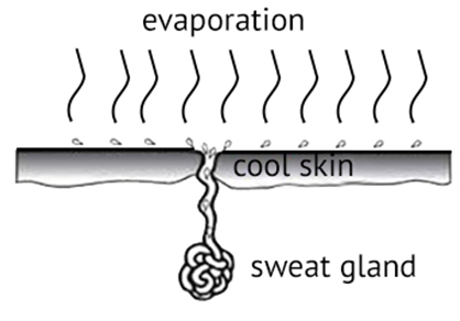体の熱を逃す最も効果的な方法は、本来人間の体に備わっている気化冷却機能です。気化冷却とは、人間がかいた汗が空気中に蒸発することで熱を逃す機能で、体の深部の熱を下げてくれる働きがあります。
