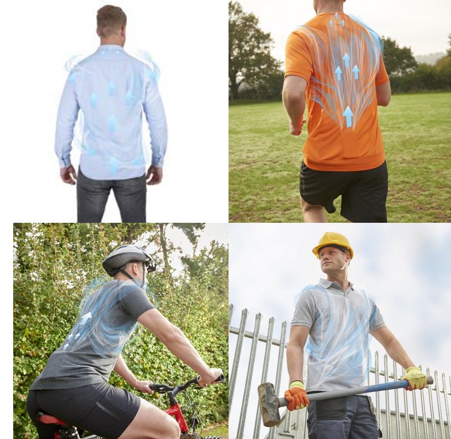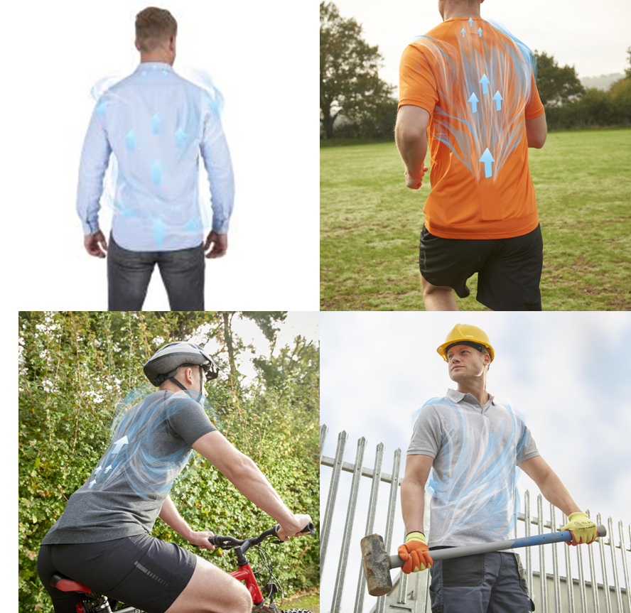 心地よい風が服の下から体全体に吹き込み、体の周りに微気候空間を作って上半身全体を涼しくすることができます。