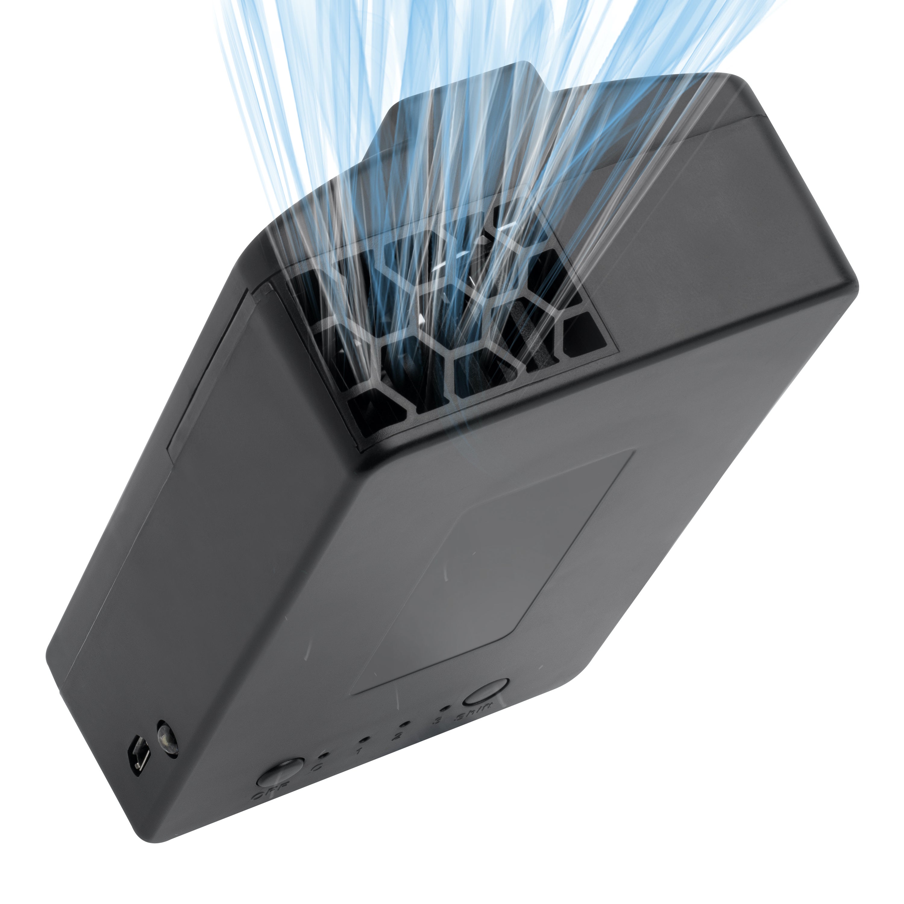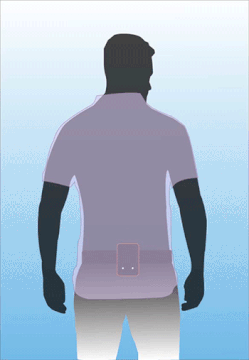 服の中に隠すことができます。装置の外側ではなくクリップの後ろに斜めにデザインされた空気の取り込み口がついているので、装置がシャツで覆われていても空気をスムーズに取り込むことができ、いつでも通気性の良い状態を保ちます。