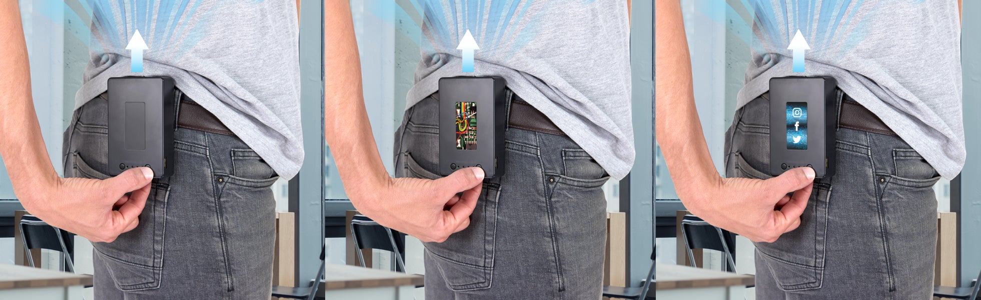 その一方、ポータブル・ボディクーラーである「Cool Human(クール・ヒューマン)」はベルトやズボンなどに取り付け、服の下にすっぽりおさまるように設計されています。