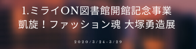 ①ミライon図書館・1F多目的ホール&2F研修室:「大塚勇造ヴィンテージコレクション&作品展」