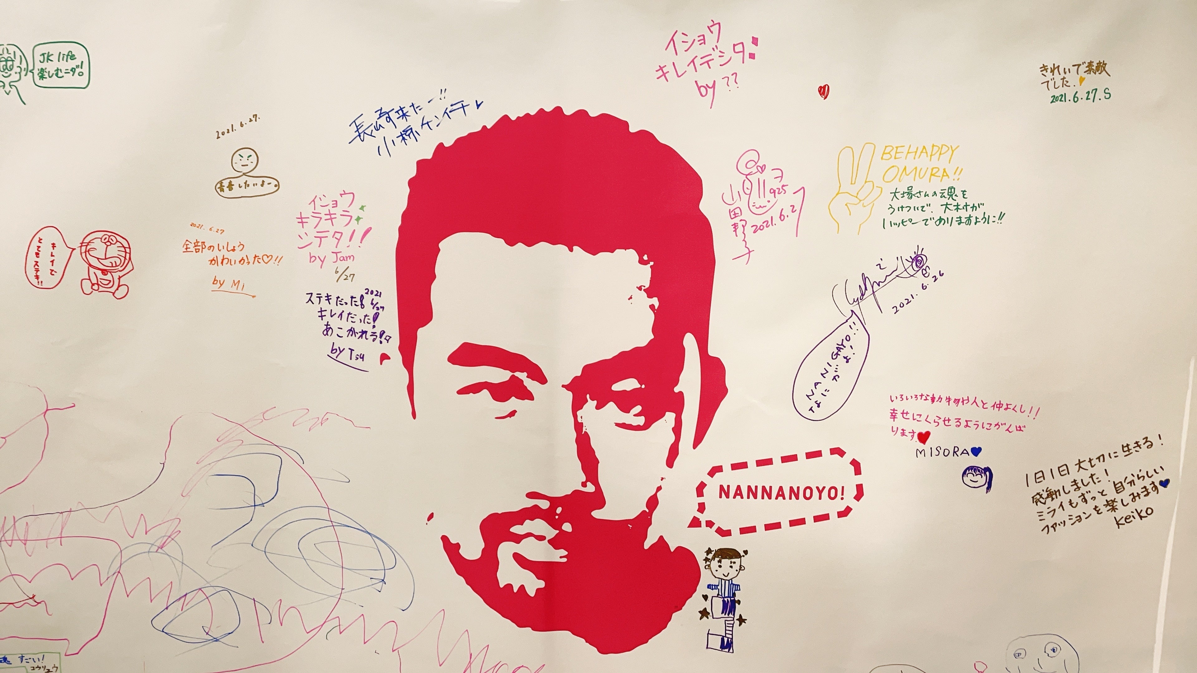 大塚勇造展の入り口付近に、メッセージボードを準備しています。