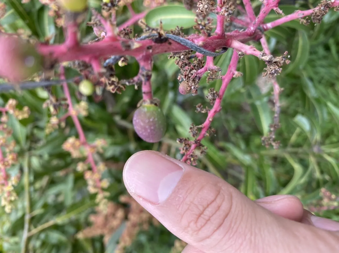マンゴーの樹はしっかり枝を伸ばし、小振りではありますが真っ赤な実がたくさんなっていたのです。