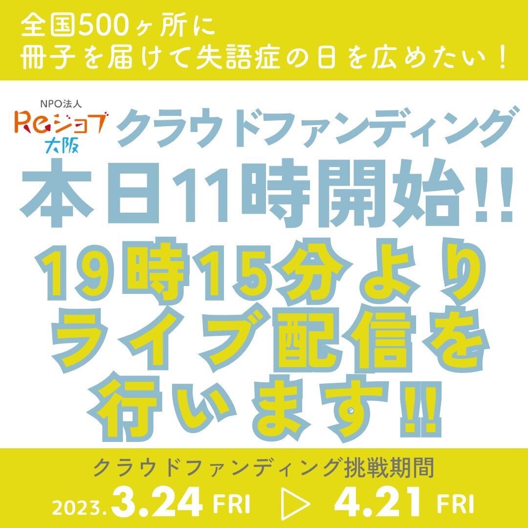 2023/03/24 10:10失語症の日2023のクラウドファンディングは3月24日11時にスタートいたします。リターンの内容などはお楽しみにしていてください!! ▽▼ 11:00よりスタートしますhttps://camp-fire.jp/projects/view/662978▽▼こちらのLINE公式でページやリターンを先行公開中ですhttps://lin.ee/A0ljbFIライブ配信のお知らせクラウドファンディング開始当日の 3月24日の19時15分よりライブ配信を行います。配信内容はいまメンバーで練っております。・今回どんな想いで挑戦するのか・当事者の方がどんなことに困っているのかなどをお伝えできればと思います。お忙しい時間だとは思いますが是非リアルタイムで応援をお願いいたします。コメントを頂けると励みになります。ライブ配信は失語症の日制定実行委員会のメンバーでReジョブ大阪 代表理事 西村紀子のFacebookより配信いたします。https://www.facebook.com/profile.php?id=100004526976862 もっと見る