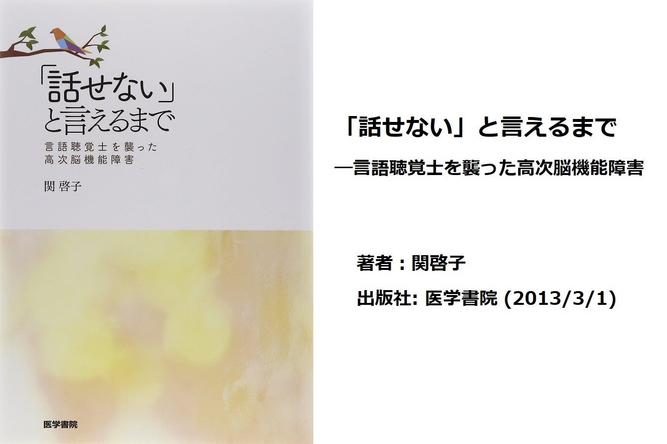失語症や半側空間無視などの、高次脳機能障害を専門領域として、30年以上臨床・研究・教育活動を行ってきた言語聴覚士の関先生が、神戸の映画館前、脳梗塞で倒れたのは、2009年7月11日のこと。