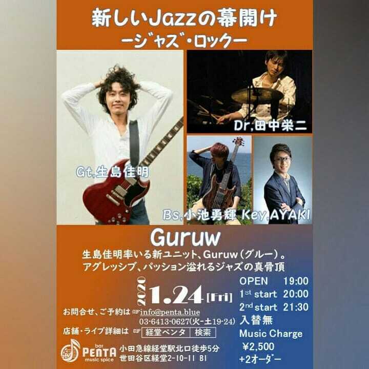 ちょうどこないだ大学受験に例えた話がでたけどその後どうなったか知りたい人いるかな?笑第一志望には落ちて第二志望の大学に入ることになってそれからは学校はほとんど行かなかったな週1回か2回位けど友達からノートを借りたりとかうまくやって大学3年が終わる頃には卒業できる単位を全てとり終わってたなので大学4年の時はほとんど学校に行かずにニートみたいな生活してたんだけど今思えばそれを在学中にできたことがよかった!一年遊び倒してるとその瞬間は楽しくてもその先に何も無いなということに気付けたそうして将来のことを考えてるうちにたまたまジャズに出会ってのめり込んでいって、みんなが就職していく中、俺はジャズをものにしたくて就職もせずに試行錯誤していた 〜〜続く〜〜ジャズギタリストを目指してから現在に至るまでの話はまた次回ということにしようこうやって振り返ってみてよく思うのは、至るところに人生の分岐点があるということ例えば、もし第一志望の大学に入っていたら今どうなっていたのか?とかねけど不思議と昔からあまり後悔はしない、むしろ一番いい選択をした位にポジティブに捉えちゃうそして振り返ってみて至るところに分岐点があるということは、つまりまさに今も分岐点の真っ只中にいるかもしれないということ、渦中にいるとなかなか気付けないことが多いけど少しでも感じられれば動き方も変わってくると思うそんな訳で2/3にレコーディングを控えたノリにノッてるGuruwのライブが今夜経堂であります行ってきます(^^)※レコーディング直前ライブ!1/24金曜 @経堂Bar Penta19:00open1st 20:00start2nd 21:30start『Guruw』生島佳明gtAYAKI key小池勇輝el-b田中栄二drmc2500円経堂Bar Pentahttp://penta.blue世田谷区経堂2-10-11 B1生島佳明 official web sitewww.yoshiojima.com