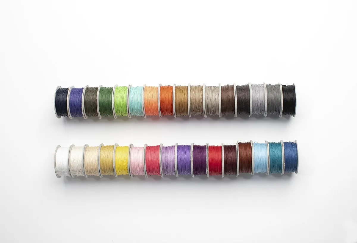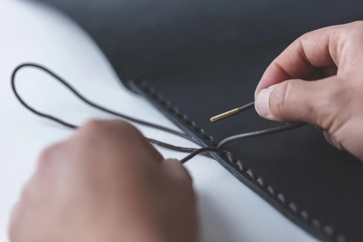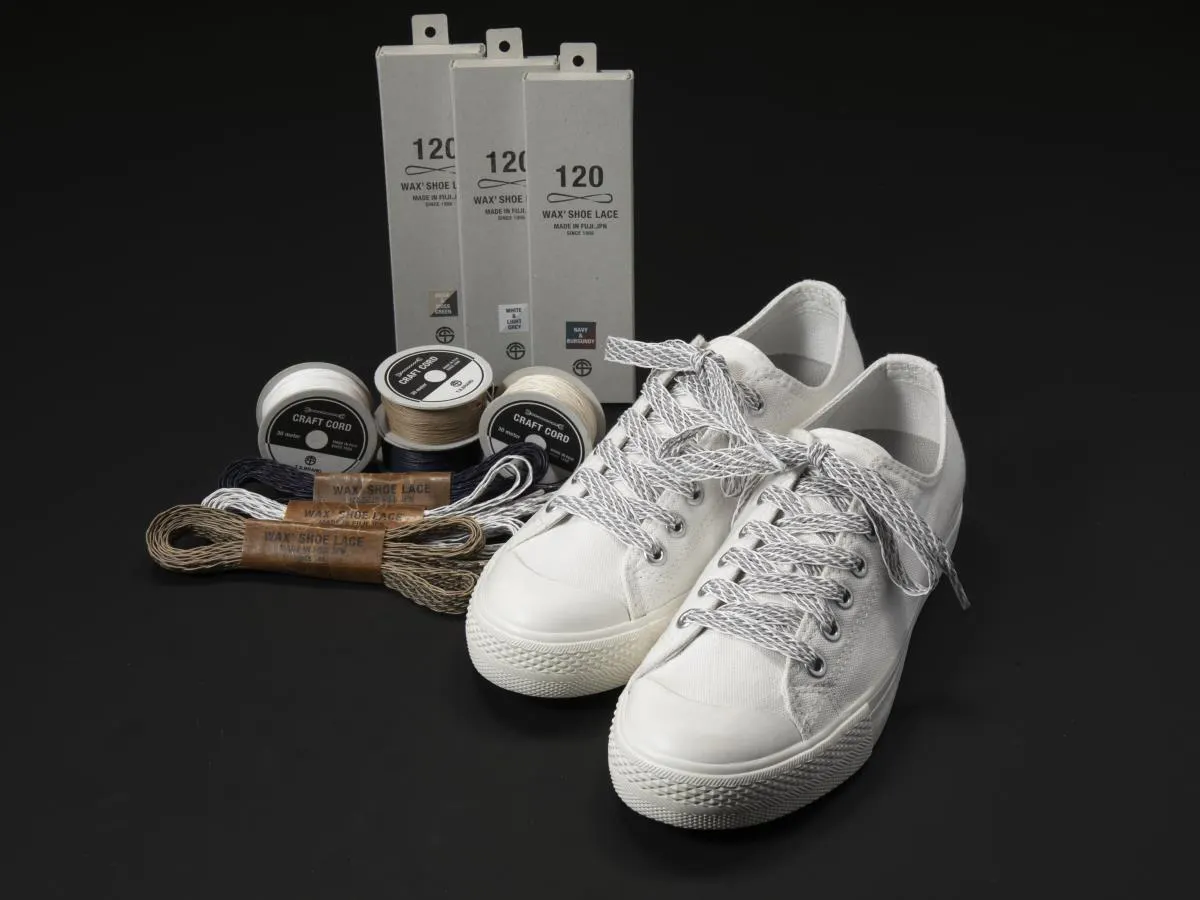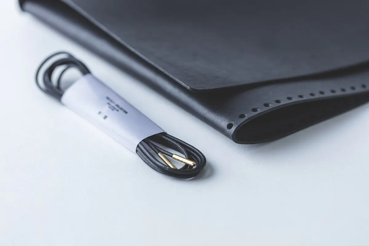 蝋引き加工という手作業による1,500回に及ぶ塗り重ねをすることで、紐の芯から染み渡るからこそ深みのある艶を生み、何層にも重なり合うからこそしっとりとした肌触りを生みます。