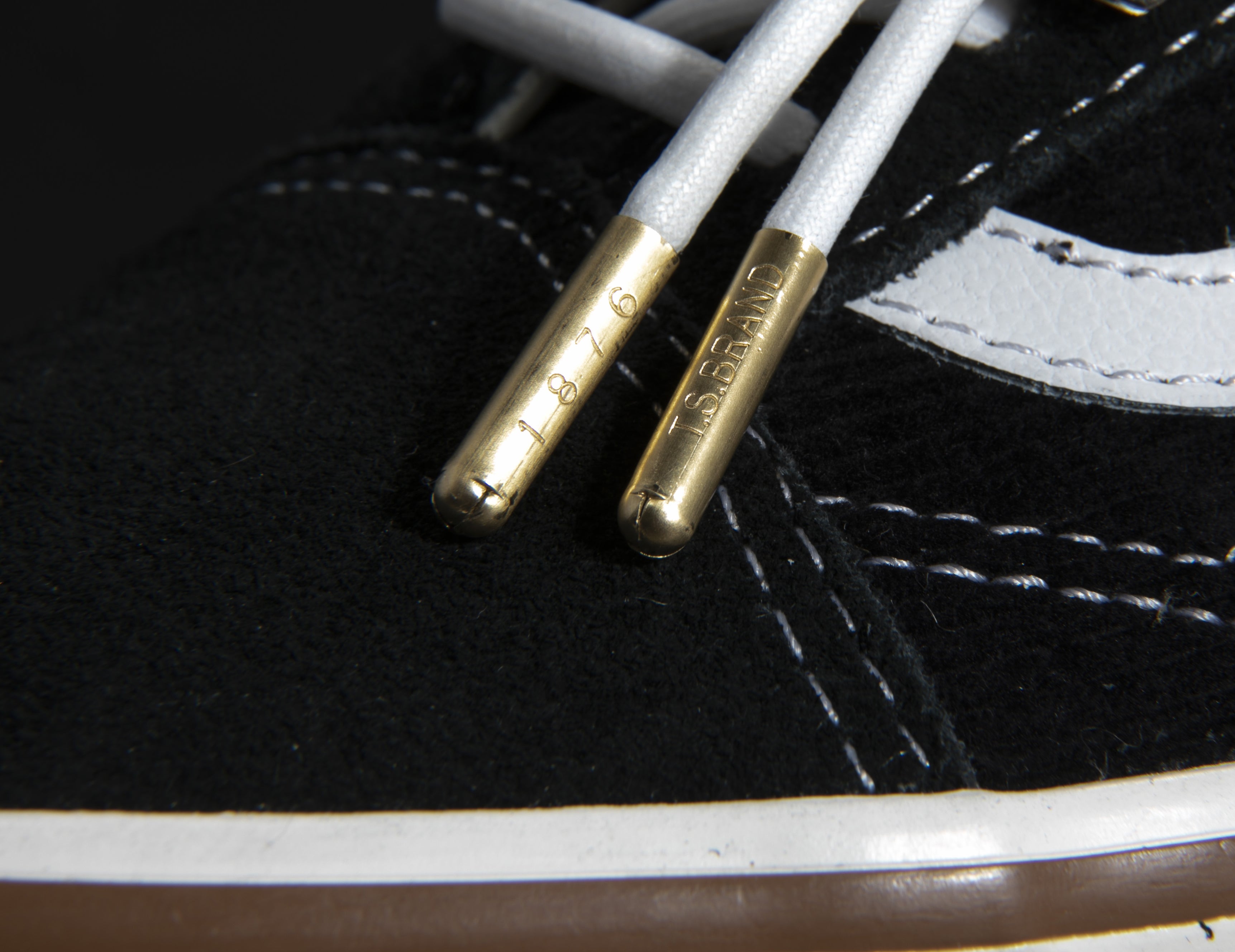 二つ目は靴紐先端に付くオリジナル金属チップ。市内のプレス加工業者にお願いし、刻印入りの真鍮製チップを作りました。