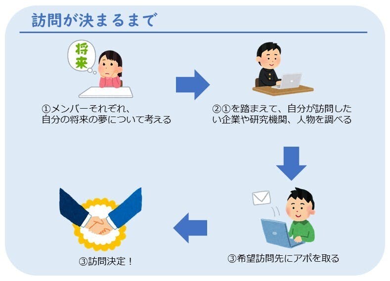 訪問が決定してからは、訪問先についてより詳しく調べ、メンバー向けの事前学習資料を作成します。