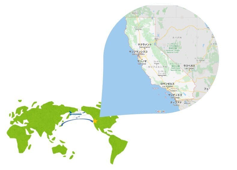 ②ビジネスや研究の最先端であるアメリカ西海岸、カリフォルニア州へと派遣します。