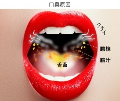 口臭は、歯(歯茎)と舌と喉から発生します。そして、口と喉は隣りあわせ。だから、歯(歯茎)からの臭いを予防しても、口臭はなくなりません。