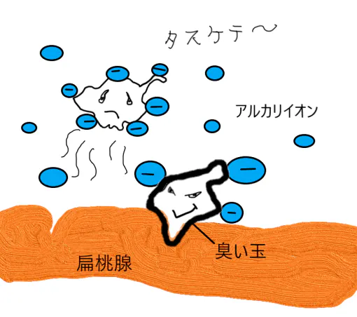 このような喉からの口臭にもアルカリイオン水が作用します。