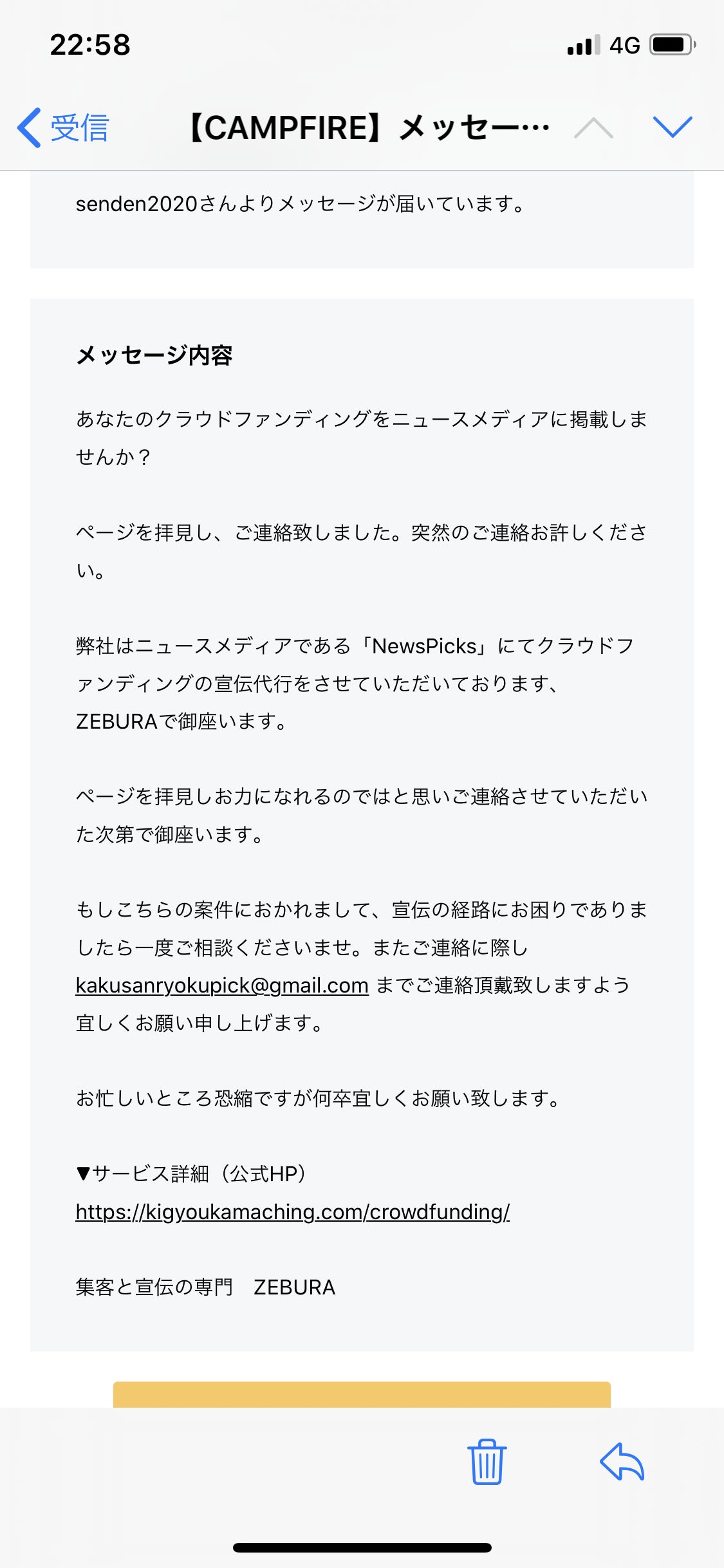 こんにちは。先程、このタイトルの記事を書き終わって、またもやなんですが投稿したと思い込みタスクキルして書いたことが全部パーになったアホこと、せなです。すごい萎えてます。一昨日の投稿で、NewsPicksに投稿できるかも!?的なことを言ったじゃないですか。僕、すんごい舞い上がっちゃって、活動報告にまで書いて、仲間にも伝えたんですよ。よくよく考えたら分かるっちゃー分かるんですけど、これ、ただの営業メールだったんです。いやー。バカですね。(笑)「ページを拝見してお伺いしました!ぜひ、あなたのクラウドファンディングをNewsPicksへ投稿しませんか?」みたいな安い言葉にダマサレました。。。(笑)クラウドファンディングって凄いです。だって、こんな大人な世界まで教えてくれるんですもの。(笑)毎日毎日、本当に勉強ばっかりです。 支援していただいているパトロンの方、本当にありがとうございます!これからまだまだ色々としかけていきますので(新たなリターン計画中!)、今後ともお付き合いよろしくお願いしますね!では、今回はこれくらいにしておきます。騙しやすそうだからって僕を騙しに来ないで下さいね!また明日( 〇-〇)ゞ