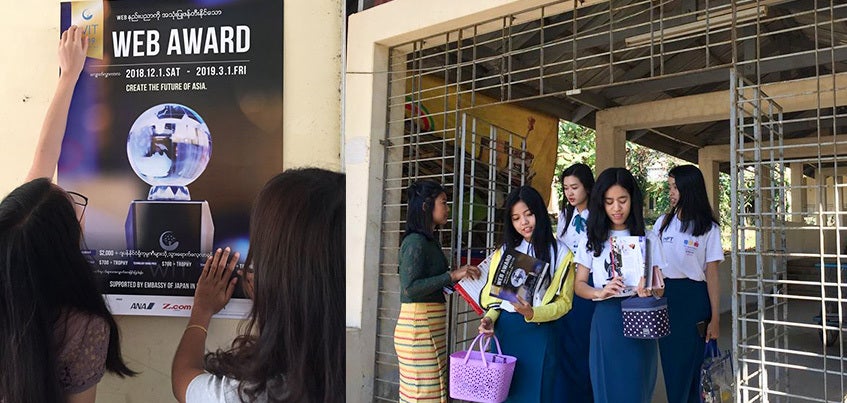 WIT2017 ミャンマースタッフと一緒に制作したポスターを学校を中心に掲示