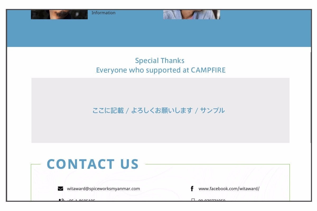 2020/08/03 15:37皆様、いかがお過ごしでしょうか。WITAWARD2020の授賞式が終わってから1ヶ月少しが経過しました。日本のみならず、ミャンマーでも新型コロナウイルスの状況が日々変わっておりますが、一日も早い終息を願っております。さて、今回はWITAWARD2020最優秀グランプリ受賞者のLWIN MOE PAING(ルイン モー パィン)からお礼のお手紙が届きましたのでご支援いただきました皆様にお送りさせていただきます。▼実際のお手紙です。▼日本語に訳させていただきました内容です。私はWIT Award 2020で「Digital Myanmar Farm」というタイトルでグランプリを受賞者したLWIN MOE PAING(ルイン モー パィン)です。若者たちのための本イベントにつきまして、開催してくれたスパイスワークスをはじめクラウドファンディングを通じ多くの心ある皆様からご支援をいただき、皆さまの一人一人に心から感謝しております。大学生の時からウエブサイトの作成に興味があり仕事としてもやりたかったので受賞したことでもっと自分の目的に近づいで来たと感じられました。自分のライフキャリアにも特別な思い出になりました。私もいつかITに興味がある若者たちに自分が学んだことを共有しながら社会に貢献できるようになれればと思っています。このような自信を持つことができ、クラウドファンディングを通じて支援してくださった皆様には心から感謝しています。********若い人たちのエネルギーとアイディアで夢がかなえられますように弊社としましても引き続きサポートに尽力したいと思っております。改めまして、皆様からのご支援につきましても、心より感謝申し上げます。WITAWARDスタッフ一同 もっと見るWITAWARD2020の授賞式ライブ配信が無事に終了いたしました!