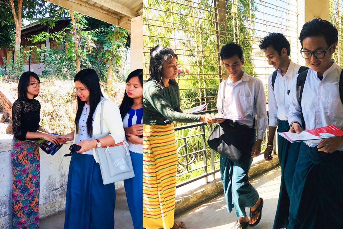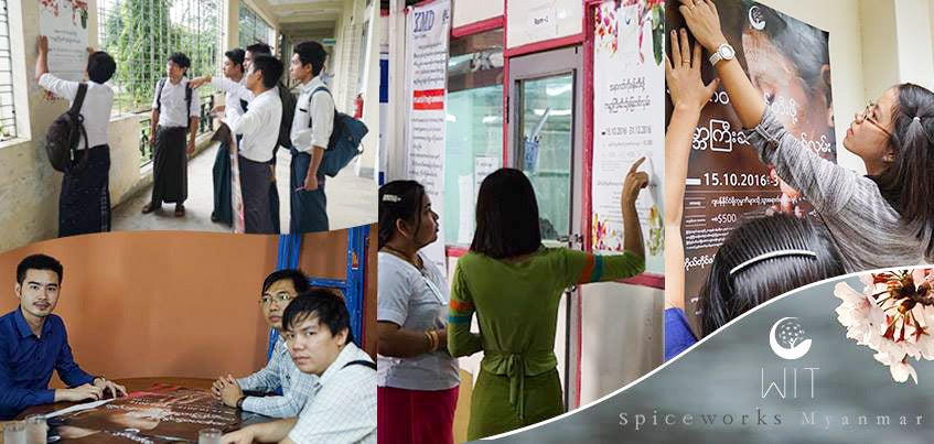 WIT2017 ミャンマースタッフと一緒に制作したポスターを学校を中心に掲示