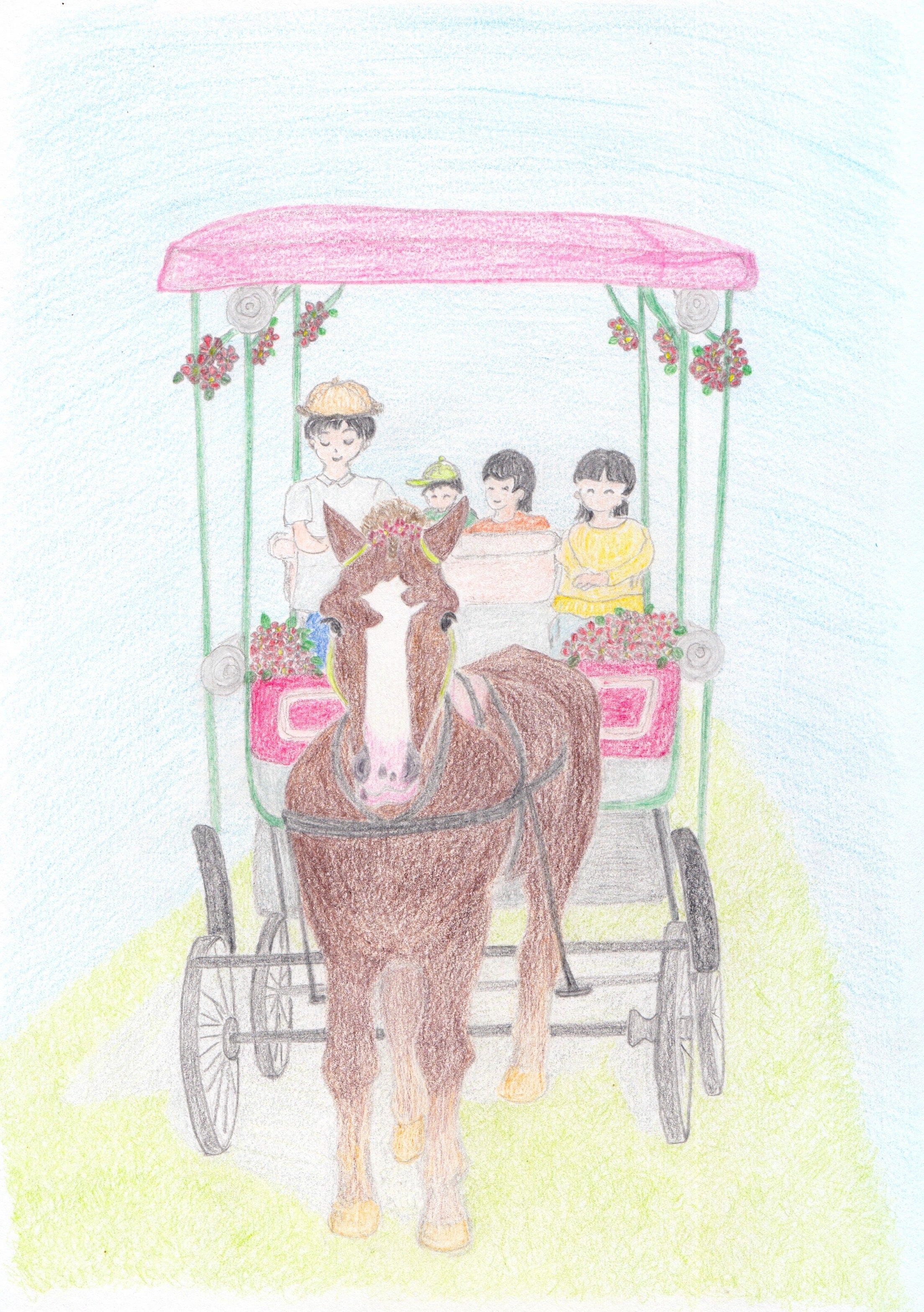 力持ちのブルトンの由美子なら人を乗せた大きい馬車も引っ張ることができます。