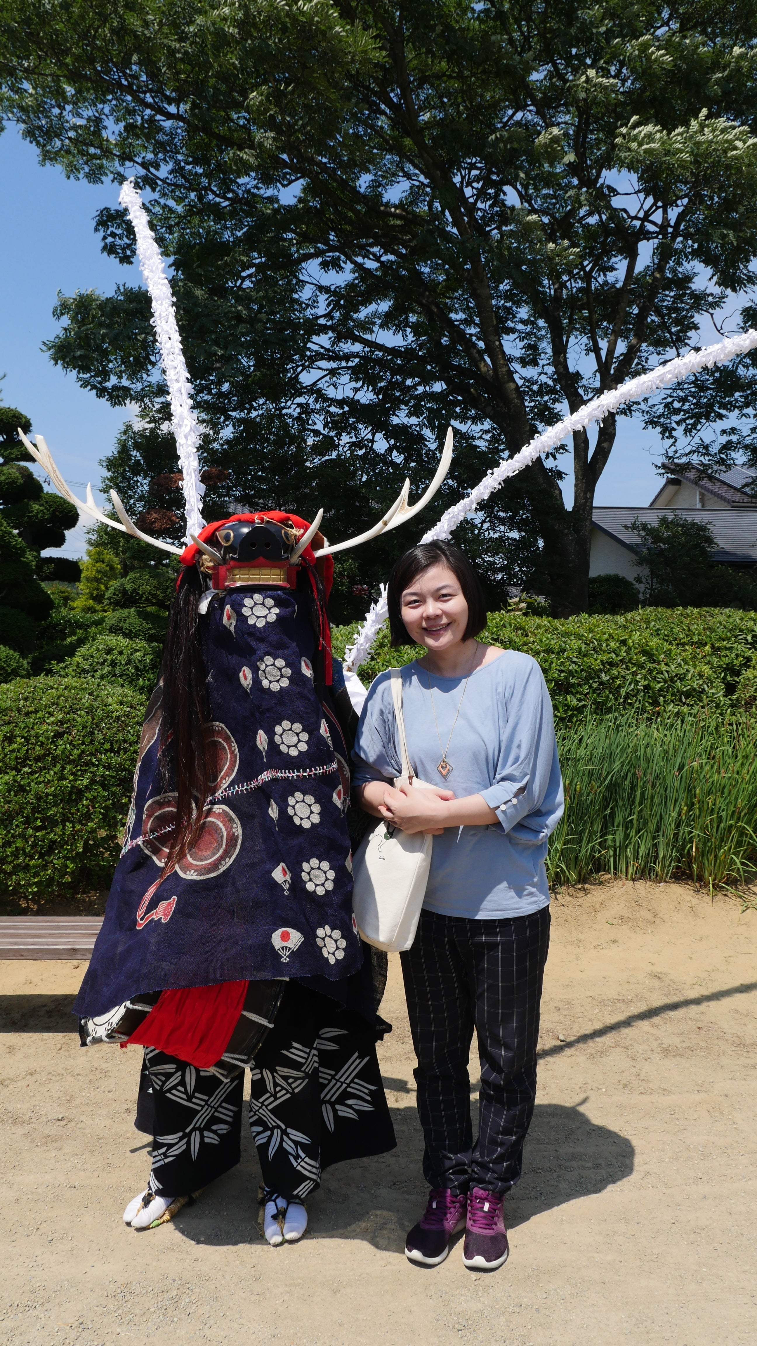 劇作家黒川さんと、行山流鹿踊の装束