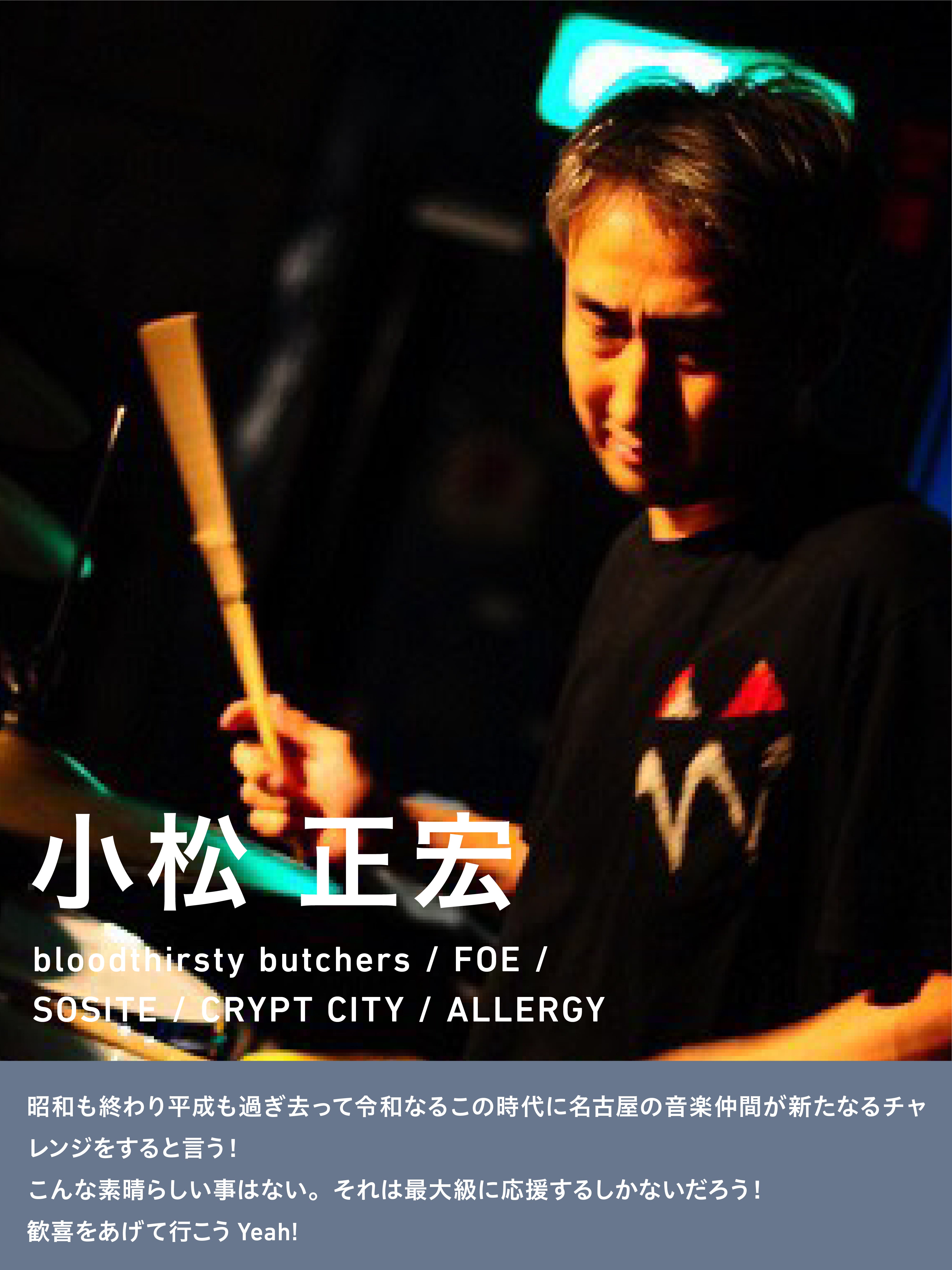 さらに、ex-bloodthirsty butchers、SOSITE、CRIPT CITY etc.のドラマー 小松正宏氏より、コメントをいただきました。