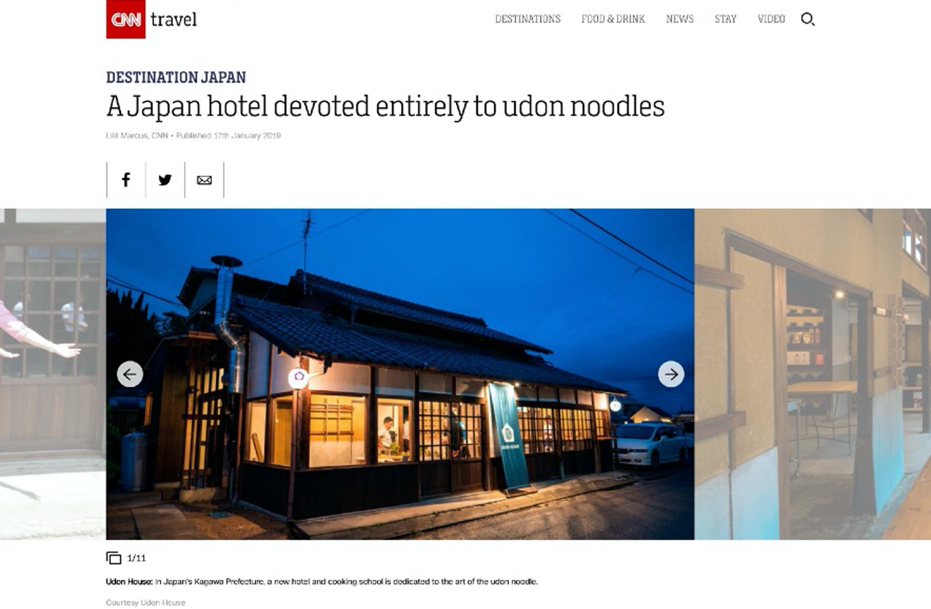 UDON HOUSEは、香川県三豊市にあるうどんを打たなければ泊まれない宿泊施設で、20年間使われていなかった古民家をリノベーションしました。