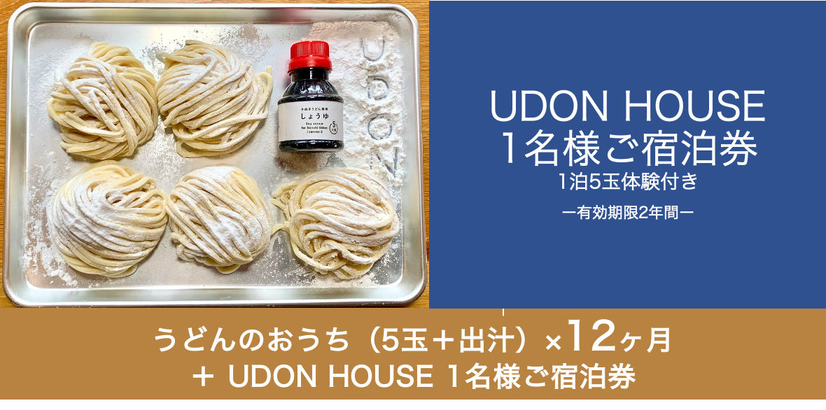 ※1口につき1名様をご招待とさせて頂きます。UDON HOUSEは現在1日1組様限定での営業となりますので、予めご理解の上、ご宿泊日についてはご予約時に空いている日程でご案内致します。