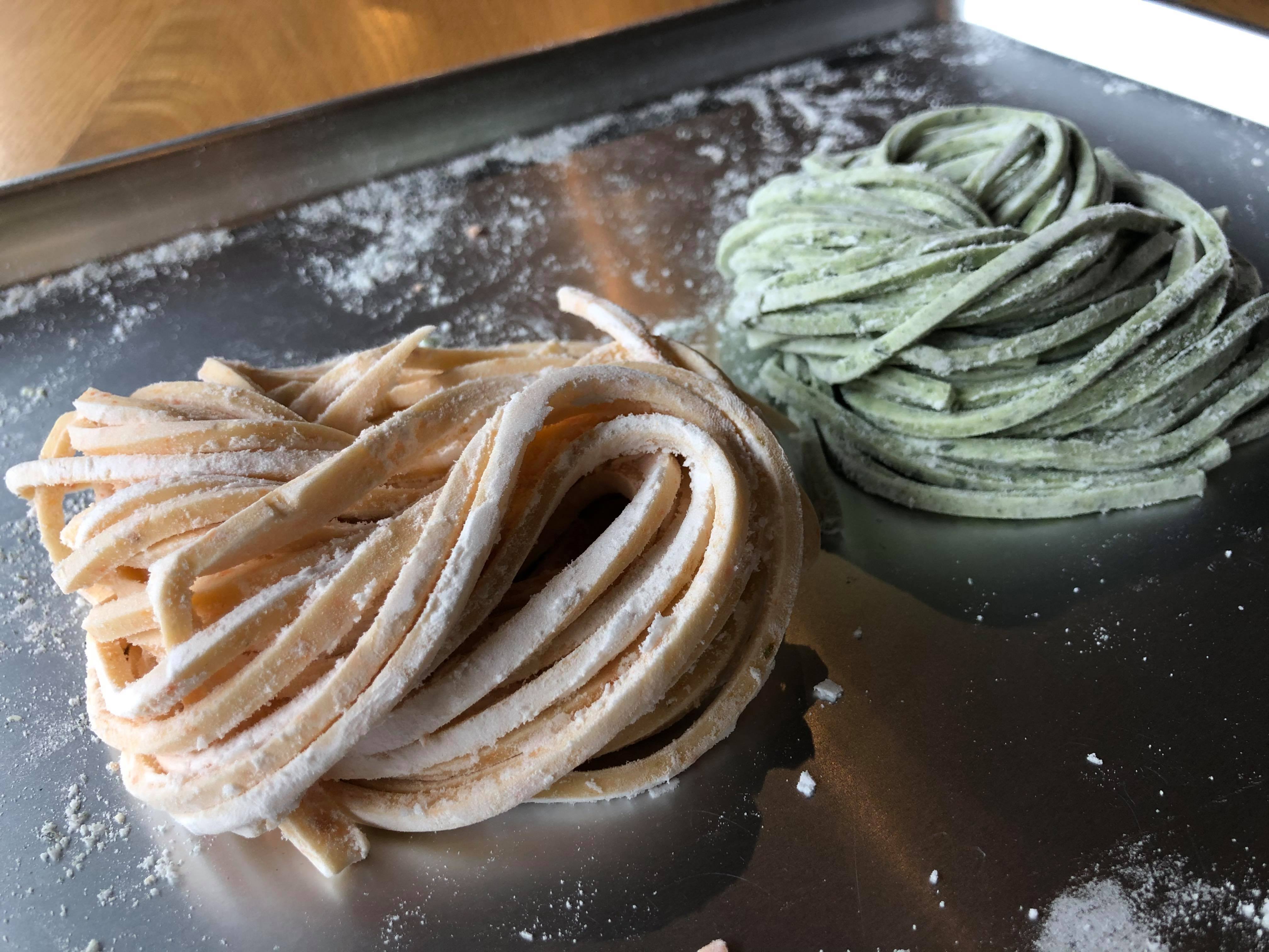 メニューによって太さや茹で時間、塩分量など微調整を繰り返して最適なものを皆様のご自宅にお届けします!また、月替りで「チャレンジうどん」も加えます。「チャレンジうどん」とは、わかめやにんじんなどのパウダーを練り込んだ色とりどりのうどん麺です。今月は何が届くかな?と毎月お楽しみに〜!
