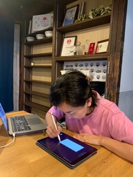 結果どうなるかというと、タブレットに向かってひたすらタテやヨコやナナメの線や、はたまた三角形や四角形やその他の模様を描き続けることになります。
