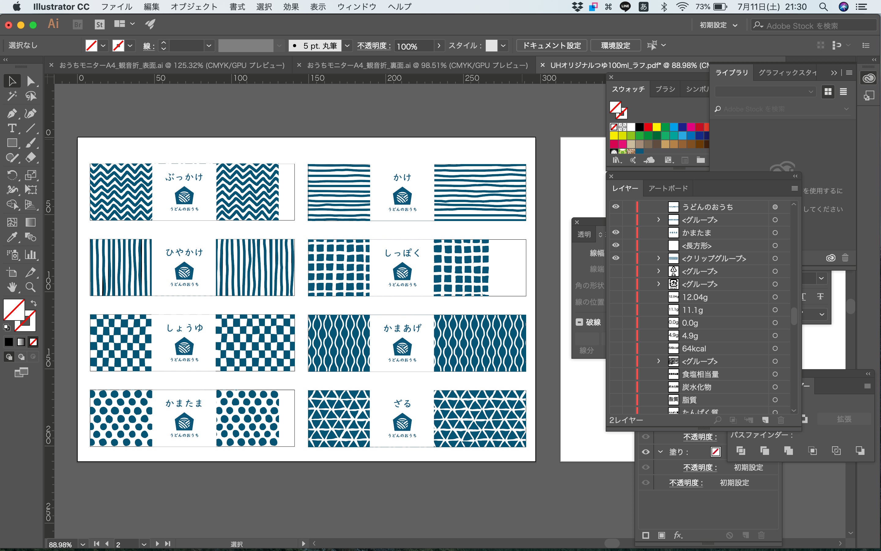 そしてさらにありがたいことには、麺の個包装に貼付するスリーブも作る必要がありました。ひとつ形になりそうになると次がやってくる、さながらデザイン千本ノック。しかしこちらもボトルとリンクしたデザインで、いい感じに仕上がりそうです。