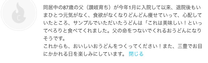 お父さまの命を繋ぐおうどん、、、そんな存在にうどんのおうちがなったこととても嬉しく思います。