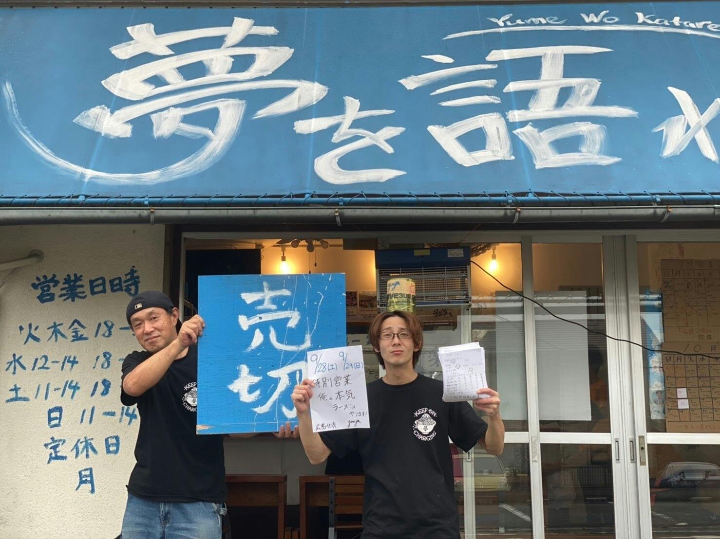 僕は、西岡さんの理念に共感し別府店の立ち上げ&修業をしてきました。ここでは、本当に沢山の方との出会い、夢との出会い、働くことの楽しさや夢を語ることの無限の可能性を知ることが出来ました。2019年9月28.29日の2日間卒業営業で250杯を売り切ると目標を立てて、結果的には別府で過去最高杯数