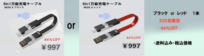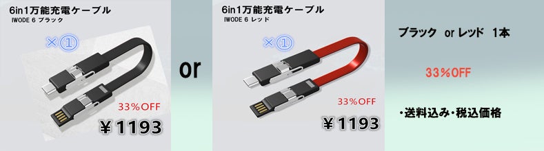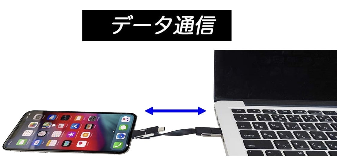 つまりこの「IWODE 6」を持っていればどの様な状況であっても、microUSB、Lightning、USB-Cと言う3つの規格以外のケーブル端子が出て来ない限りこの「IWODE 6」1本で何でも充電+データ通信する事ができるのです。