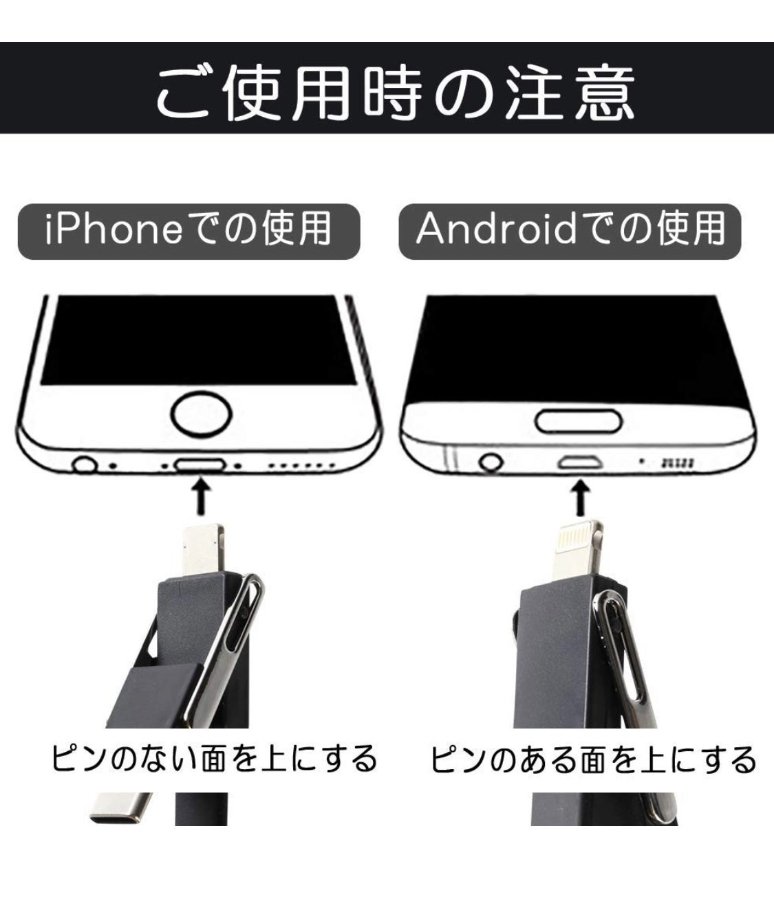 そしてもう片方はiPhoneやiPadを充電する為にLightning端子とAndroid端末やGoPro等のUSB充電機器が充電可能なmicroUSBのハイブリット端子となっているだけでなく、microUSBをUSB-Cに変換する為の変換プラグが付属していますので、最近多くなってきたUSB-C端子を装備したスマートフォンやUSB充電機器を充電する事ができる様になっています。