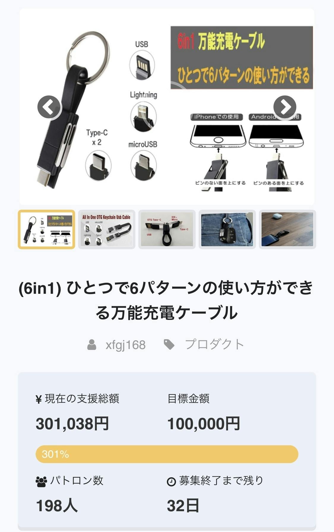 IWODE 6「(6in1) ひとつで6パターンの使い方ができる万能充電ケーブル」プロジェクトオーナーのxfgj168です。